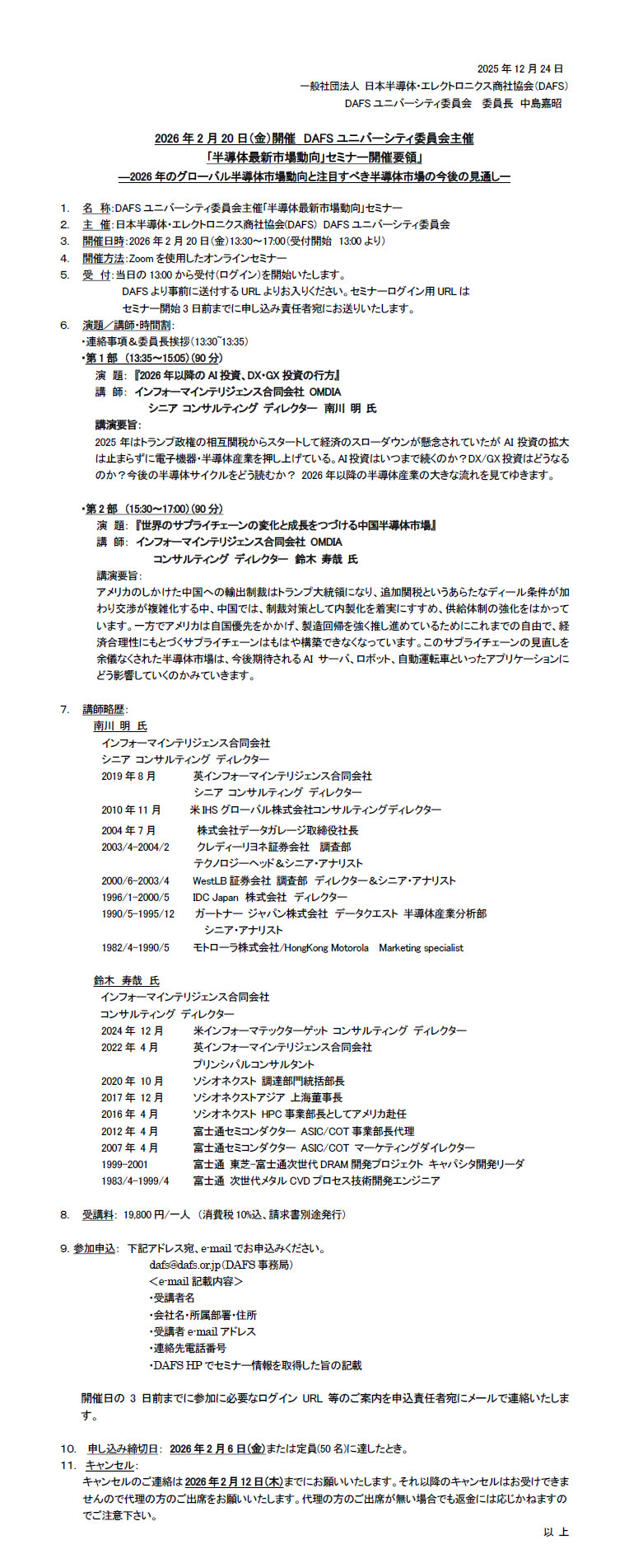 | 主 催: | 日本半導体・エレクトロニクス商社協会(DAFS) DAFS ユニバーシティ委員会 |